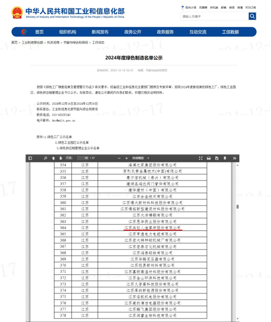 12月16日,中华人民共和国工业和信息化部公示了2024年度绿色制造名单,凯发K8国际草坪上榜“国家级绿色工厂”名单。